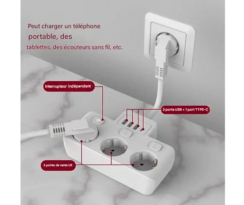 ✔ Évite l’achat de plusieurs rallonges et chargeurs