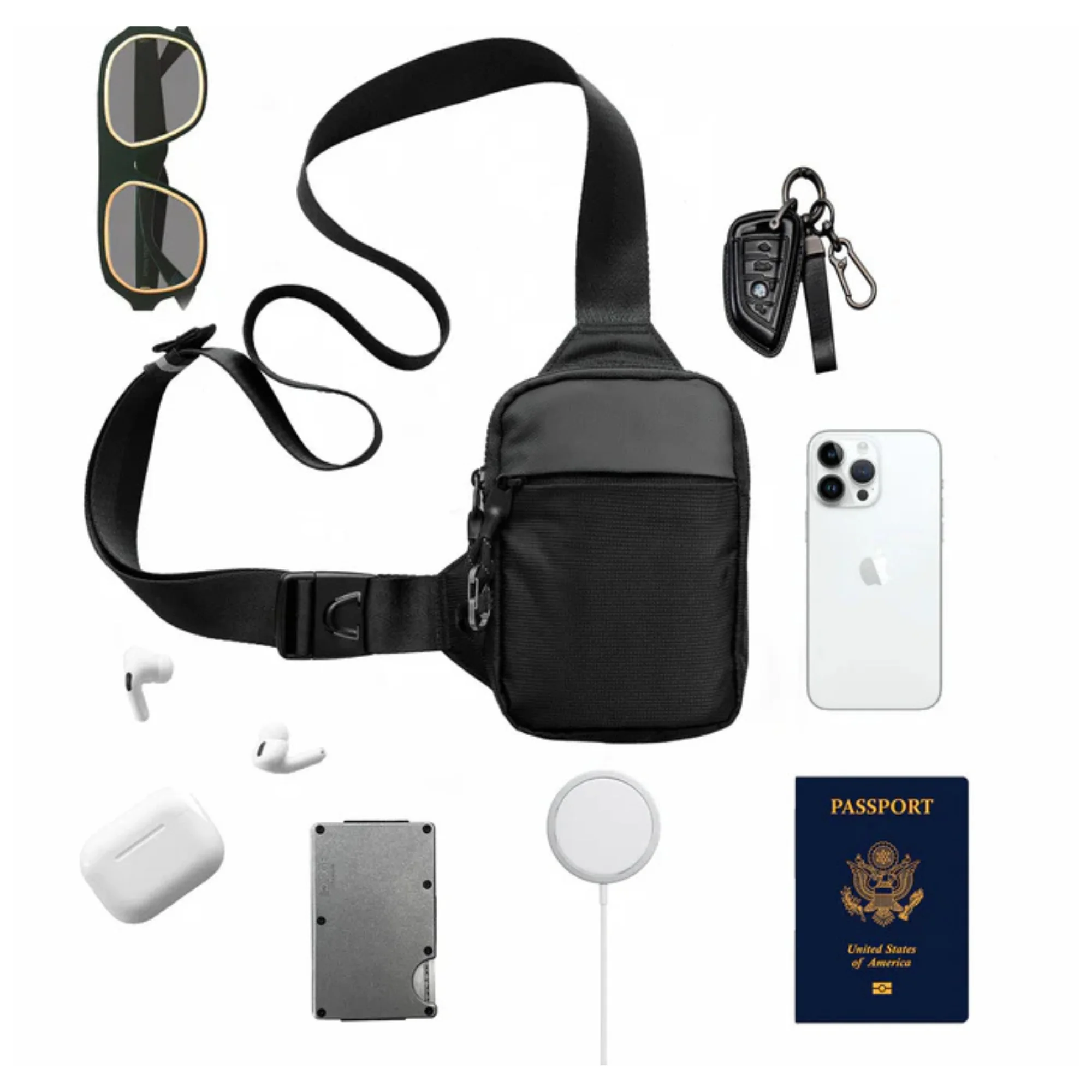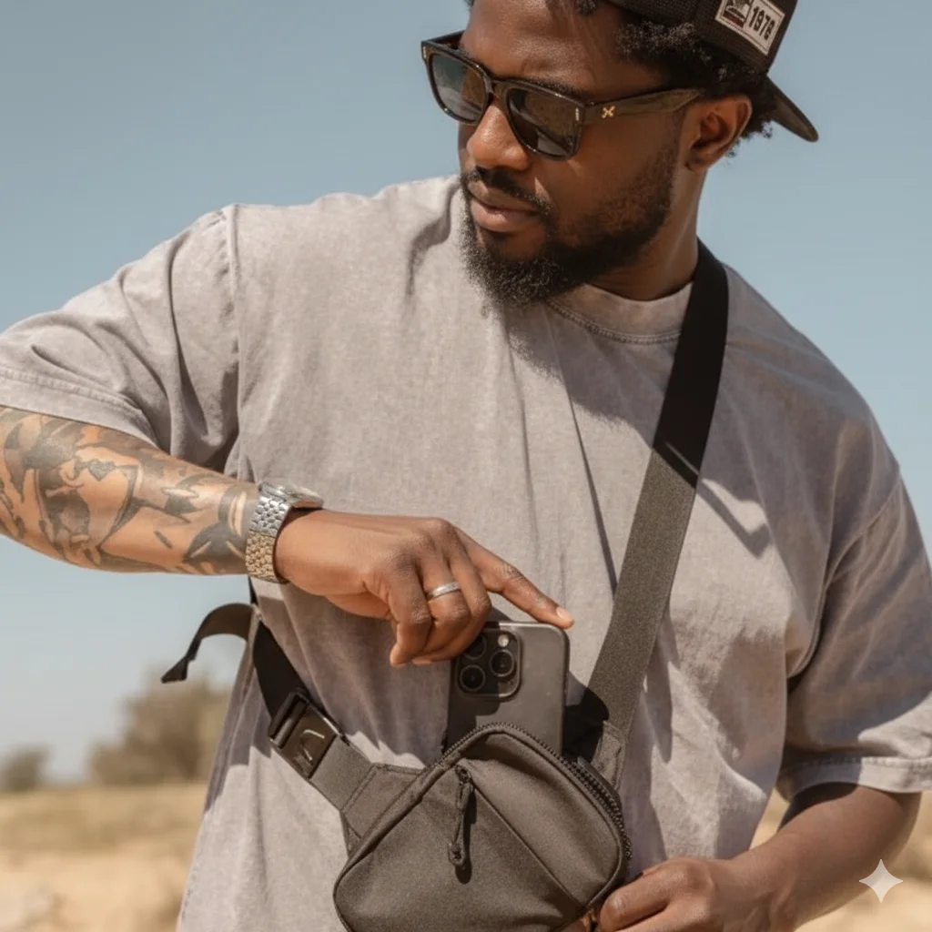Gardez votre téléphone, votre argent et vos documents protégés contre vous, à l’abri du vol et de la pluie — tout en restant libre de vos mouvements.